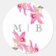Sticker Rond Élégante floraison d'orchidées roses Initiales Mon
