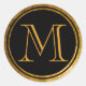 Sticker Rond Élégante huile noire ronde en or encadrée Monogram