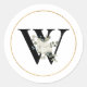 Sticker Rond Élégante lettre florale blanche W sur blanc