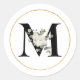 Sticker Rond Élégante lettre M florale blanche M sur blanc