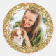 Sticker Rond Élégante Noël Photo personnalisée Gold Faux Partie