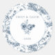 Sticker Rond Élégante toile Florale Bleue Française Gravée