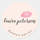Sticker Rond Élégantes lèvres roses manuscrites calligraphie de