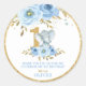 Sticker Rond Éléphant 1er Anniversaire Faveurs Bleu Floral Merc