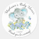 Joli autocollant de baby shower pour éléphants garçons. Visitez notre boutique pour voir toute notre collection de baby showers d'éléphants safari dans la jungle !