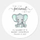 De mignons autocollants sans distinction de genre pour vos faveurs de baby shower et la correspondance avec "A Sweet Little Peanut Is On Her Way" écrits dans un mélange de typographie gris mou et un script élégant, et une aquarelle verte à la menthe pastel d'un éléphant bébé. Personnalisez le nom et la date de la douche de la future mère dans une simple typographie grise.