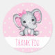 Sticker Rond Eléphant rose bébé avec Polka Dot Oreilles Merci