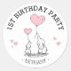 Sticker Rond Eléphants et Coeurs Rose mignons | Fille 1er anniv