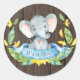 Autocollant rond classique Élévation de l'éléphant garçon rustique Bleu