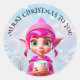 Sticker Rond Elfe rose mignonne avec café ou cacao Noël