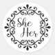 Elle A Ses stickers Fancy Frame. Une belle façon de partager vos pronoms. Les coller n'importe où et les partager aussi.