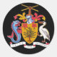 Armoiries de la Barbade. Les armoiries de la Barbade ont été adoptées à l'indépendance en 1966 par décret de la reine Elizabeth. Comme d'autres possessions britanniques dans les Caraïbes, les armoiries ont un casque avec un symbole national en haut, et un bouclier sous lequel sont supportés deux animaux. Le symbole national que l'on trouve au-dessus du casque de la Barbade est le poing d'un Barbadien tenant deux tiges de canne à sucre croisées à la croix de Saint-André. C'est représentatif de l'importance de l'industrie sucrière et de la Barbade qui célèbre sa fête nationale de l'indépendance le jour de la Saint-André. Le bouclier est de couleur or. Sur elle se trouve une paire de la fleur nationale, connue sous le nom de Pride de la Barbade, et un seul figuier barbu (Ficus citrifolia). Le bouclier est soutenu par un dauphin et un pélican. Ils représentent respectivement l'industrie de la pêche et l'île Pélicane. En bas se trouve la devise nationale de la Barbade ("Fierté et industrie") sur un parchemin.