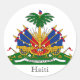 Armoiries d'Haïti. Les armoiries d'Haïti ont été introduites à l'origine en 1807, et sont apparues dans sa forme actuelle depuis 1986. Il montre six drapeaux drapés du pays, trois de chaque côté, qui sont situés devant un palmier et des canons sur une pelouse verte. Sur la pelouse, on trouve divers objets, comme un tambour, un fusil, des armes longues et des ancres de navire. Au-dessus du palmier se trouve un casquette phrygien placé comme symbole de liberté. Sur la pelouse entre le tambour et le ruban, il était supposé y avoir deux morceaux de chaîne avec un maillon brisé symbolisant la chaîne brisée de l'esclavage. Le ruban porte la devise : L'Union Fait La Force. Cela ne doit pas être confondu avec la devise nationale d'Haïti, qui selon la Constitution d'Haïti est "Liberté, Égalité, Fraternité".