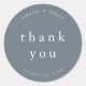 Cet autocollant boho marine rustique simple mariage Merci de la Collection Emelia est parfait pour un mariage moderne. Le design minimaliste présente une typographie simple mais élégante sur ardoise bleu-gris avec un air de sophistication moderne. Personnalisez vos autocollants de faveur avec les noms du couple et la date mariage.