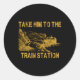 Un design simple mais charmant avec une personne accompagnant quelqu'un à une gare, capturant un moment profond plein d'émotions et de possibilités.