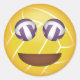 Les stickers émoticônes de volleyball de ces filles pour les amateurs de volleyball comportent un émoticône souriant et joyeux avec des yeux de volleyball - vous choisissez n'importe quelle couleur pour les panneaux de volleyball non blancs des yeux, montrés ici en violet - par katz_d_zynes