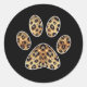 Sticker Rond Empreinte de patte avec éclat de léopard noir et o