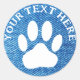 Version blanche de l'empreinte de patte. Autocollants personnalisés pour décoration et étiquetage. Version imprimée en denim bleu. Le texte peut être modifié pour la personnalisation. Toutes imprimées sur papier. Aucun tissu ne sera utilisé dans la fabrication de ce produit.