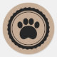 Sticker avec un empreinte de patte noir sur une image de papier kraft brun.