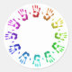 Bumper autocollant avec des empreintes colorées des mains humaines en cercle. Vous pouvez ajouter du texte à l'intérieur