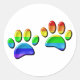 Sticker Rond Empreintes de pattes de Faux 3D Rainbow Dog