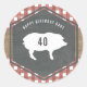 Sticker Rond En vichy rouge Cochon Burlap Anniversaire Bbq