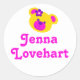Sticker Rond Enfants id nommé rose blanc teddy filles autocolla