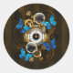Sticker Rond Engrenages à vapeur et papillons bleus