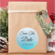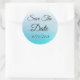 Sticker Rond Enregistrer l'autocollant Mariage bleu Aqua Date