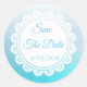 Sticker Rond Enregistrer l'autocollant Mariage bleu Aqua Date
