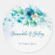 Sticker Rond Enveloppe mariage fleurie turquoise bleue