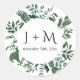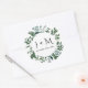 Enveloppe ronde avec vos initiales et date mariage sont parfaits pour sceller les enveloppes pour les invitations de mariage et les parties de douche nuptiale. Feuillage de feuilles de forêt colorées à l'eau dans différentes nuances de vert de chasseur émeraude par l'artiste Audrey Jeanne Roberts. Droit d'auteur .
