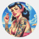 Sticker Rond Épinglette d'été rétro tatouée Bikini
