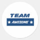 Alors tout le monde est comme vous êtes génial ! Un logo bleu et blanc avec deux étoiles.