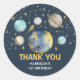 Cet autocollant rond magique présente des planètes imaginaires, la lune et les étoiles en couleur marine et or.