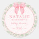 Ajoutez une touche de charme à vos cadeaux de baby shower avec notre Autocollant Rond Classique Fille Bébé Vert Sauge Ruban Rose Esthétique Coquette. Adoptez l'esthétique coquette rose girly et élevez votre événement avec l'élégance intemporelle d'un ruban à carreaux rose et d'un thème de baby shower avec ruban rose.
