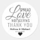 Moderne étaler l'amour non germes collants de faveur de mariage pour les faveurs d'assainissement des mains personnalisées. Personnalisez les étiquettes élégantes de mariage argenté avec les noms des mariés et des mariés et la date du mariage.