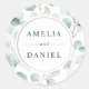 Cet autocollant mariage est orné d'eucalyptus à l'aquarelle peinte et de feuilles verts botaniques avec cadre en cercle or. Pour une personnalisation plus avancée de cette conception, cliquez sur Personnaliser Autre lien pour modifier la police, la taille et la couleur.