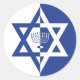 Sticker Rond Etoile de David & chanukiah Hanoukka bleu vacances