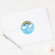 Avec un arc-en-ciel vectoriel saisissant sur un arrière - plan bleu. Il se courbe pour se rencontrer à des nuages blancs et moelleux de chaque côté. Le nuage droit est décoré d'un coeur rose. Il pleut 4 étoiles jaunes et 6 gouttes de pluie bleues.