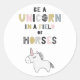 Sticker Rond Être Unicorne Dans Un Champ De Chevaux