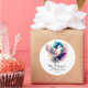 Un autocollant chrétien avec une citation inspirante des écritures représente une belle colombe blanche volant à travers le ciel, ses ailes ornées de éclats de peinture bleu et lavande. Il présente une Bible Verse Exode encourageante 33:14, "Ma Présence ira avec vous, et je vous donnerai du repos."