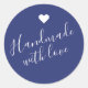 Fabriqué à la main avec l'écriture d'amour marine coeur bleu classique autocollant rond