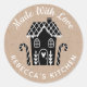 Un autocollant personnalisé "fait avec amour" avec une jolie petite maison en pain d'épice avec un coeur et les mots, fait avec amour sur un arrière - plan de couleur kraft. Personnalisez-le en ajoutant votre propre nom. Une jolie touche finale pour tous vos cadeaux faits maison. Conçu pour vous par Blackberry Boulevard.