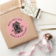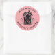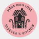 Un autocollant personnalisé "fait avec amour" avec une jolie petite maison en pain d'épice avec un coeur et les mots, fait avec amour sur un arrière - plan rose. Personnalisez-le en ajoutant votre propre nom. Une jolie touche finale pour tous vos cadeaux faits maison. Conçu pour vous par Blackberry Boulevard.