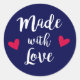 Sticker Rond Fabriqué avec amour rouge et blanc coeurs autocoll