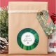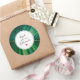 Fabriqué avec amour autocollants personnalisés avec une photo closeup d'une feuille verte tropicale arborant des frondes de palmiers vibrantes. Un cercle blanc superposé avec votre texte à l'intérieur.
