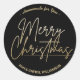 Joyeux Noël dans un faux script de feuille d'or, fait maison pour vous (ou tout message) et vos noms en lettres chic, ces autocollants ronds noirs sont élégants pour toutes les occasions de Noël.
