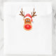 Face de rennes de Noël avec grand nez rouge portant casquette de Noël rouge.