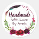Cet autocollant est un étiquette pour les articles faits à la main! Soit le coller directement sur l'article, soit créer votre propre étiquette ronde avec ce collé sur le devant pour lui donner un look élégant. Échangez simplement le nom existant pour le vôtre. Le design est composé de roses, de feuilles et de plumes aquarelles.